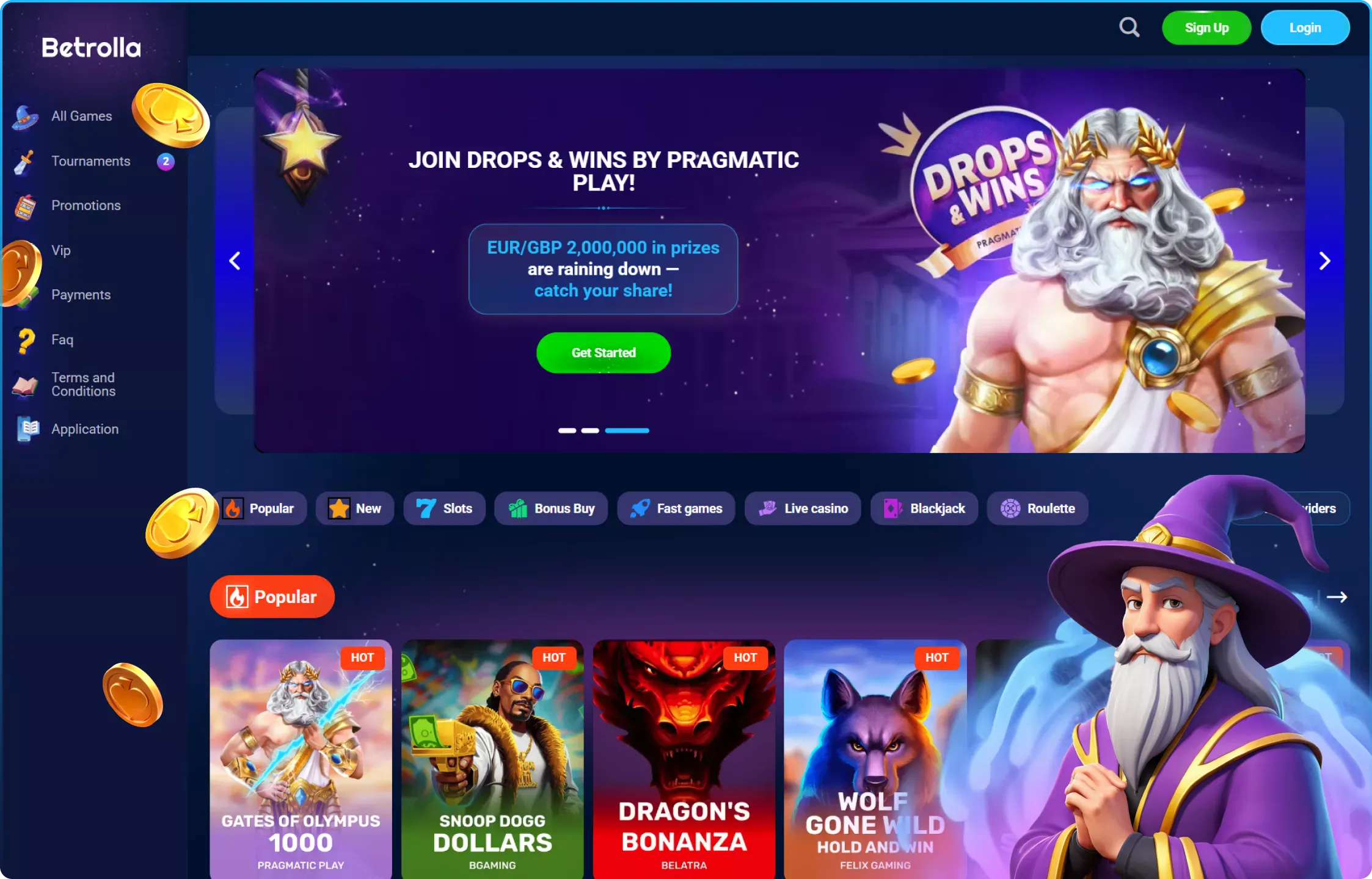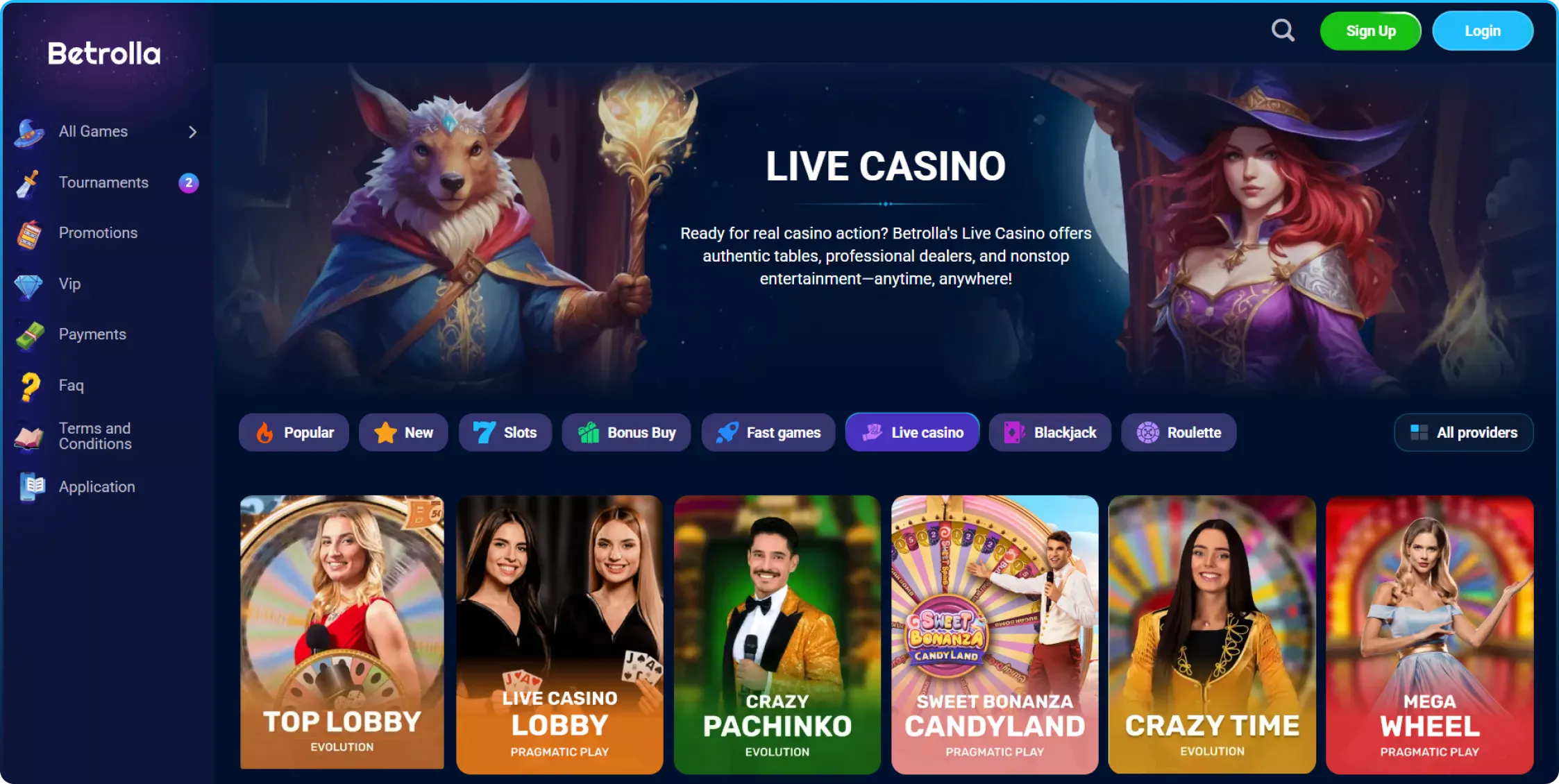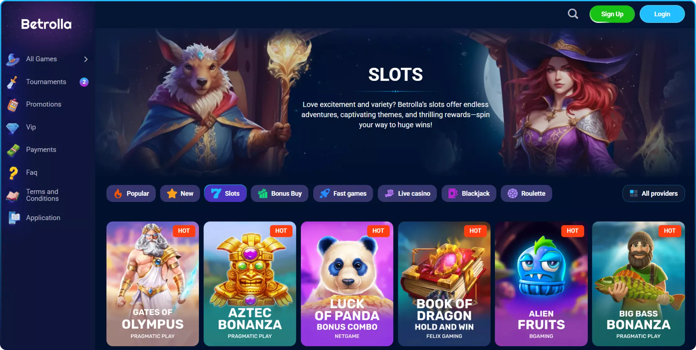 Betrolla offers a large game portfolio of over 4,500 games. Players also enjoy bonuses, payment methods, support, and a friendly user interface at the casino.