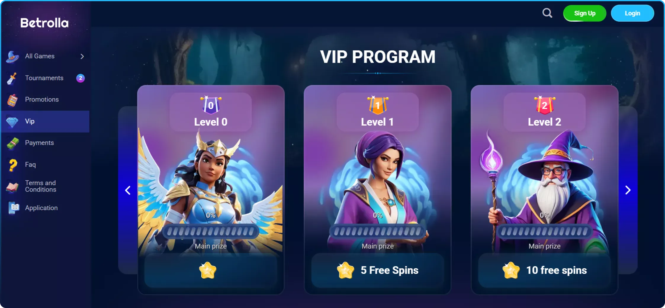 The operator also lights up your Thursdays with deposit match reload promotions. Interestingly, the amount you'll receive depends on your VIP level on Betrolla. You must use the Betrolla bonus code THURSDAY to claim this promo.